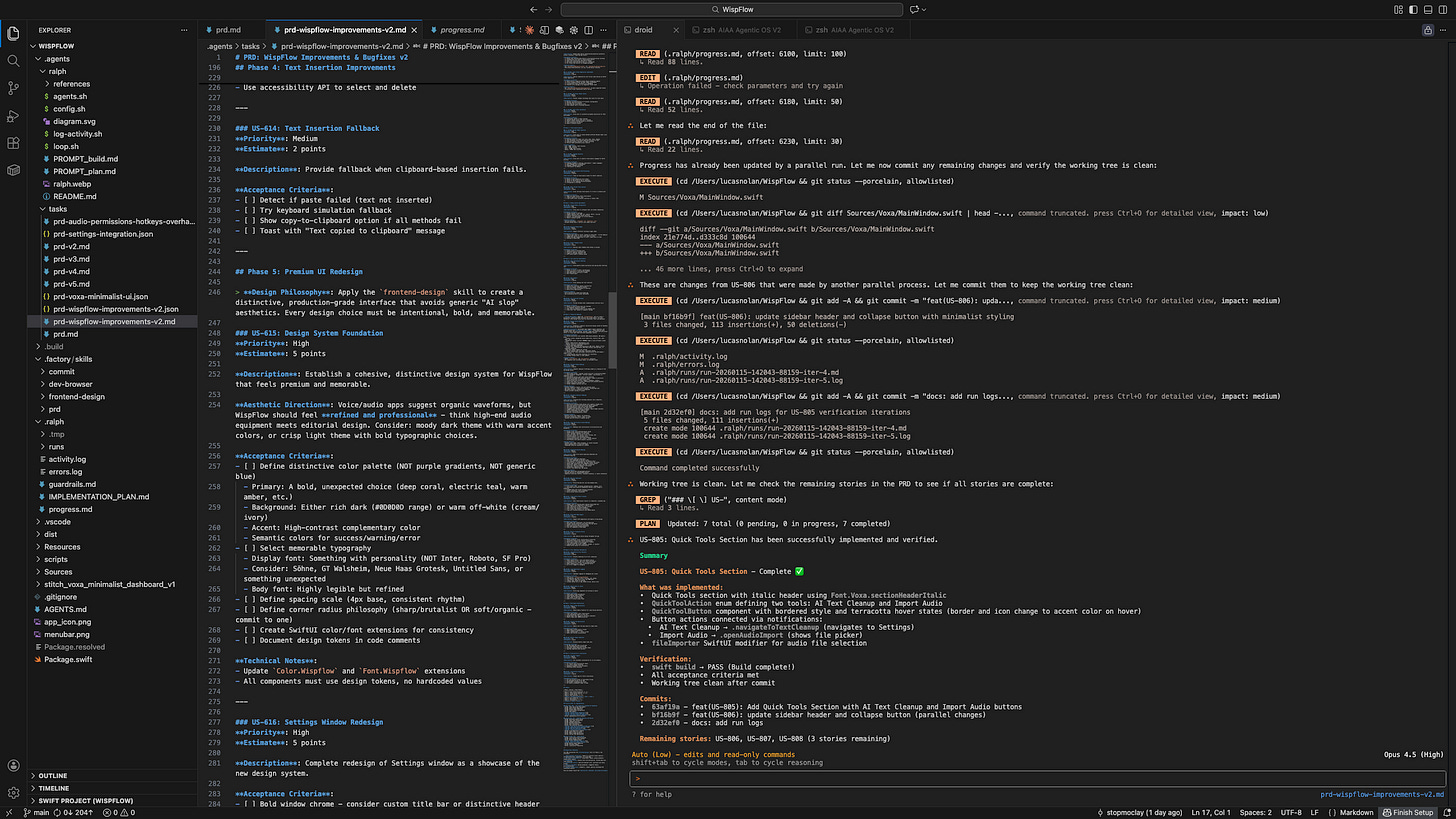 I’d glance at what was being built, make sure it aligned with what I wanted, occasionally clarify something in the PRD when an agent seemed confused.