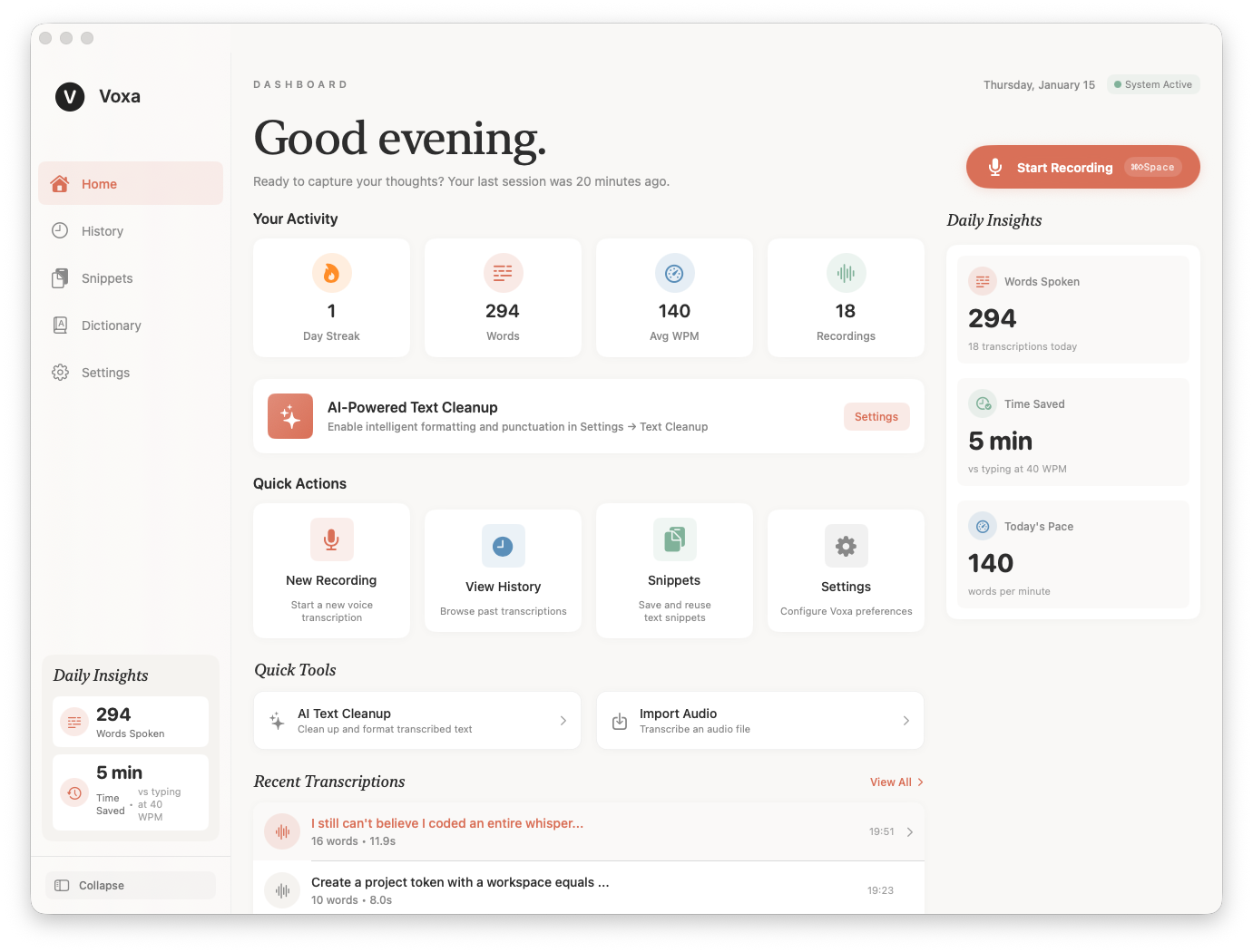 By 5pm, I had a fully functioning voice transcription app running on my computer.