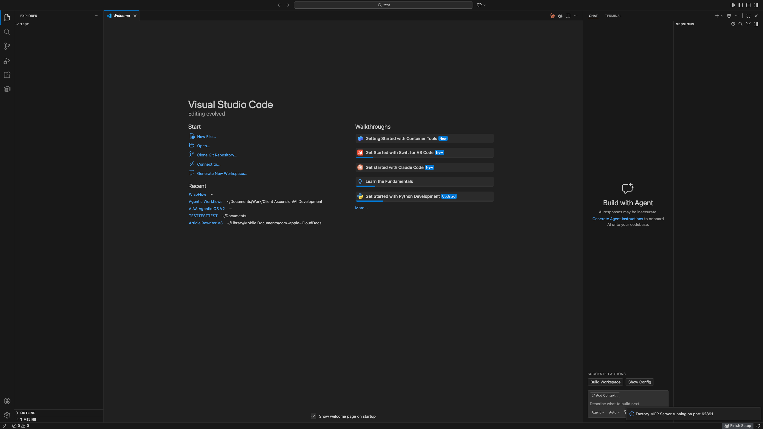 I opened a new project in Visual Studio Code.